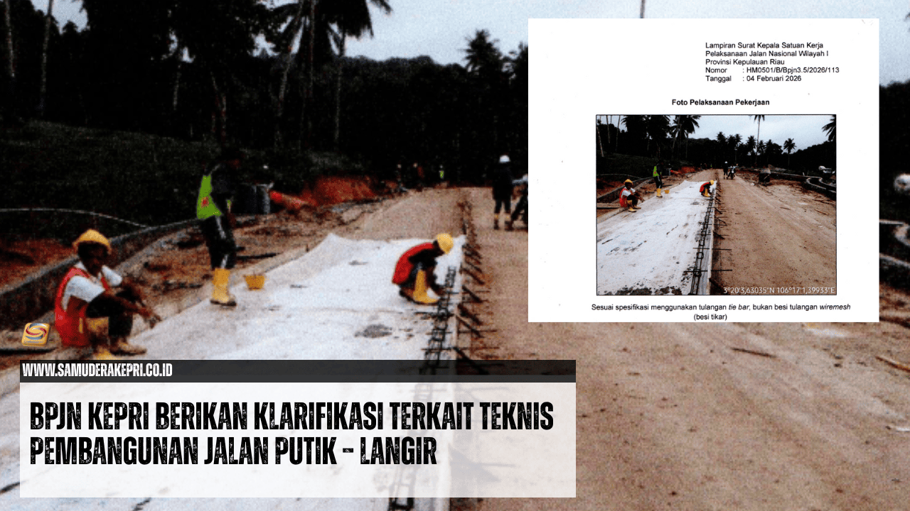BATAM, SamuderaKepri – Satuan Kerja Pelaksanaan Jalan Nasional (Satker PJN) Wilayah I Provinsi Kepulauan Riau memberikan tanggapan resmi terkait permintaan klarifikasi teknis dan transparansi dokumen proyek Pembangunan Jalan Putik – Langir di Kabupaten Kepulauan Anambas. Surat tersebut diterbitkan sebagai respons atas surat dari Media Samudera Kepri pada awal Februari 2026.