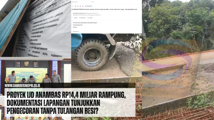 ANAMBAS, SamuderaKepri – Penyelesaian proyek Pembangunan Jalan Putik – Langir di Kabupaten Kepulauan Anambas senilai Rp14.494.861.000,00 kini menjadi sorotan publik. Meski proyek yang didanai melalui skema Inpres Jalan Daerah (IJD) TA 2025 ini telah dinyatakan rampung pada akhir Desember 2025, temuan investigasi tim redaksi mengungkap dugaan adanya ketidaksesuaian spesifikasi teknis pada item pembesian di tengah masa pengerjaan yang tergolong “kilat”.