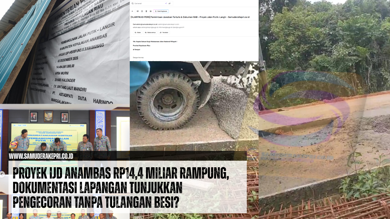 Keterbukaan Informasi Publik: Hingga berita ini diturunkan, pihak Satker PJN Wilayah I Kepri belum menjawab surat klarifikasi nomor 022/SK/KLARIFIKASI/II/2026 yang dikirimkan melalui email resmi dan ditembuskan ke itjen@pu.go.id.